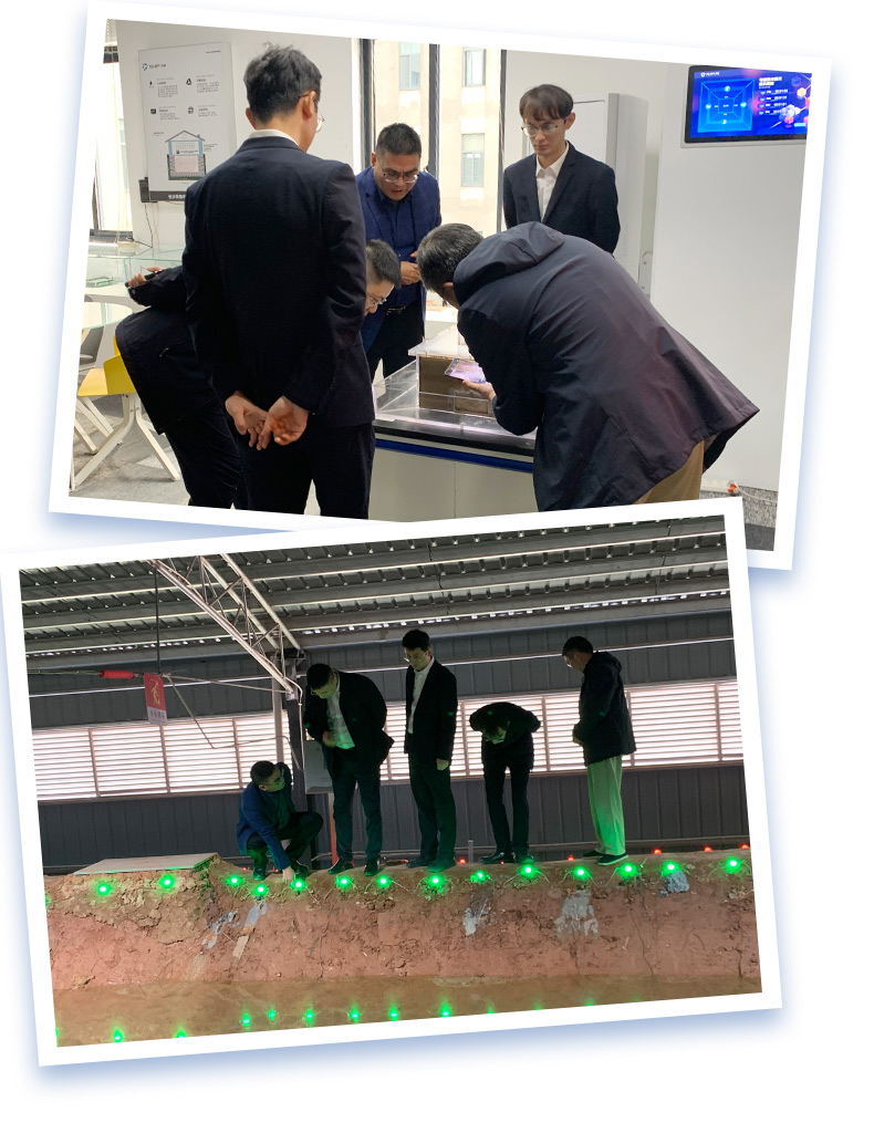 交流過程中,總經理謝翔之向集團代表重點介紹了自主研發(fā)的核心科技成果——“TQ-EPT電滲脈沖抗?jié)B除濕系統(tǒng)”,并演示了快速仿真模型,直觀呈現(xiàn)該系統(tǒng)在解決地下結構滲漏與潮濕問題上的高效機制。隨后,團隊一行深入考察了由湖南省水利水電科學研究院防災減災研究所與我司聯(lián)合共建的1:20防滲大壩模型。該模型生動還原了電滲脈沖技術在大壩防滲控濕中的智能運作全流程。